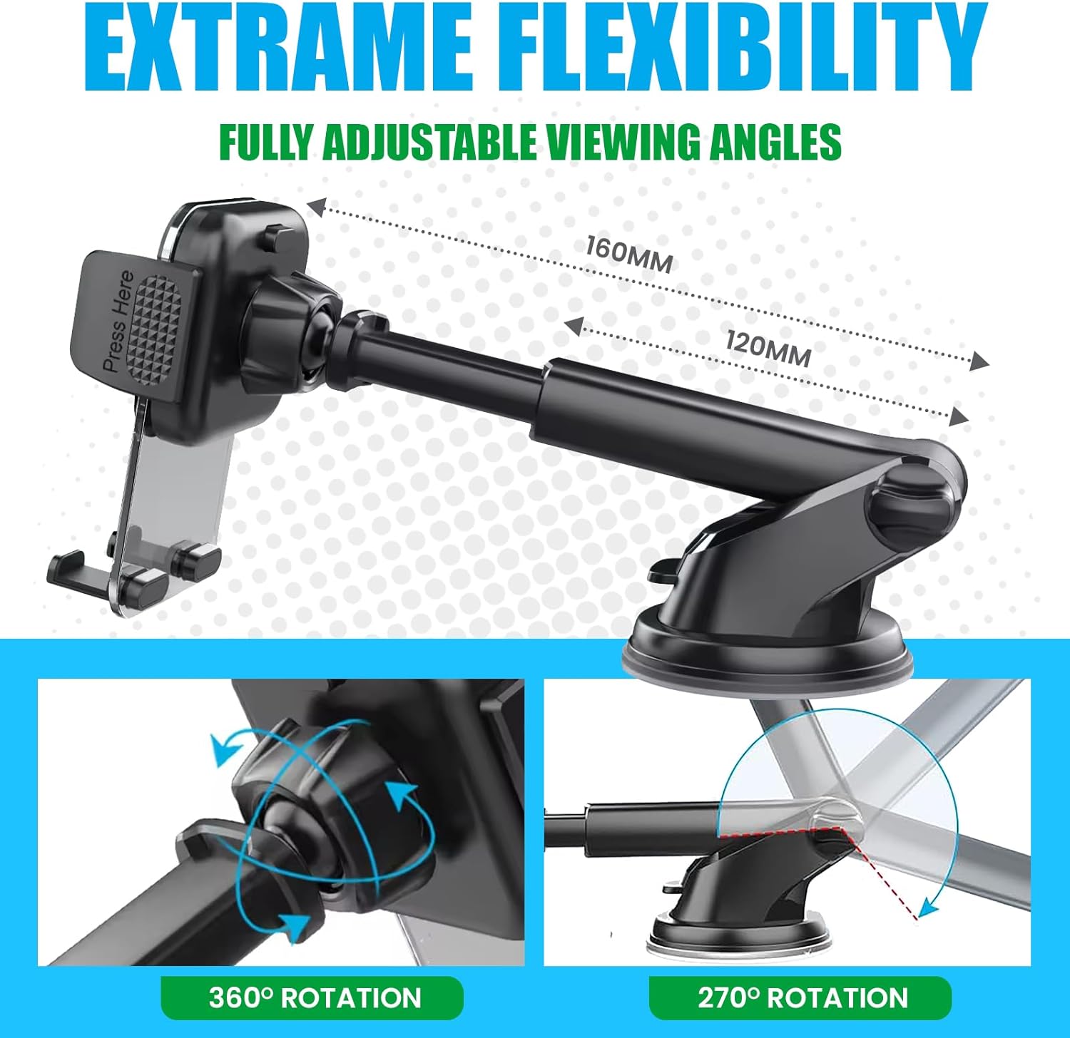 Car Phone Holder for Dashboard, Windshield, Air Vent - Universal Mount, Heavy Duty, Compatible with All Smartphones