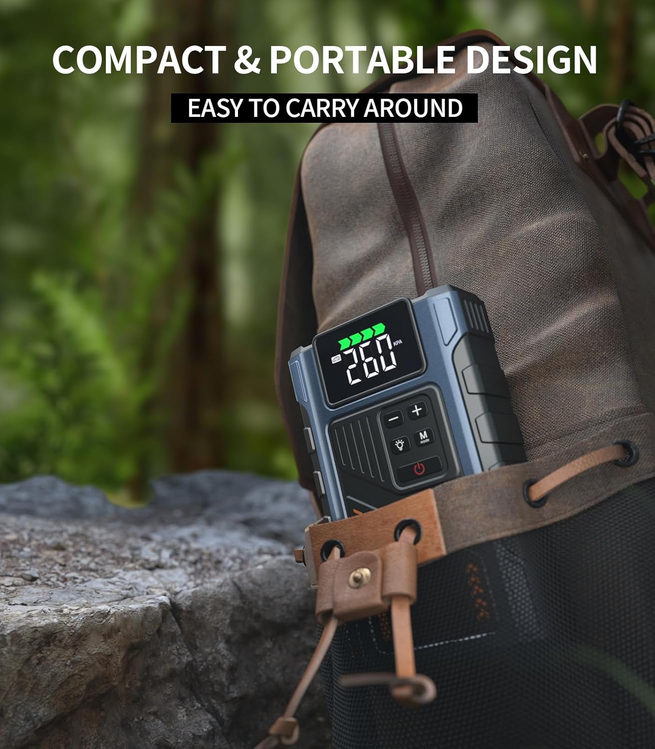 - VERSATILE POWERFUL JUMP STARTER - The jump box for car battery is a compact essential tool that features car emergency start, tire inflation, tire pressure detection, power bank and lighting function. With the jump box, you can easily handle roadside assistance such as dead battery or flat tire