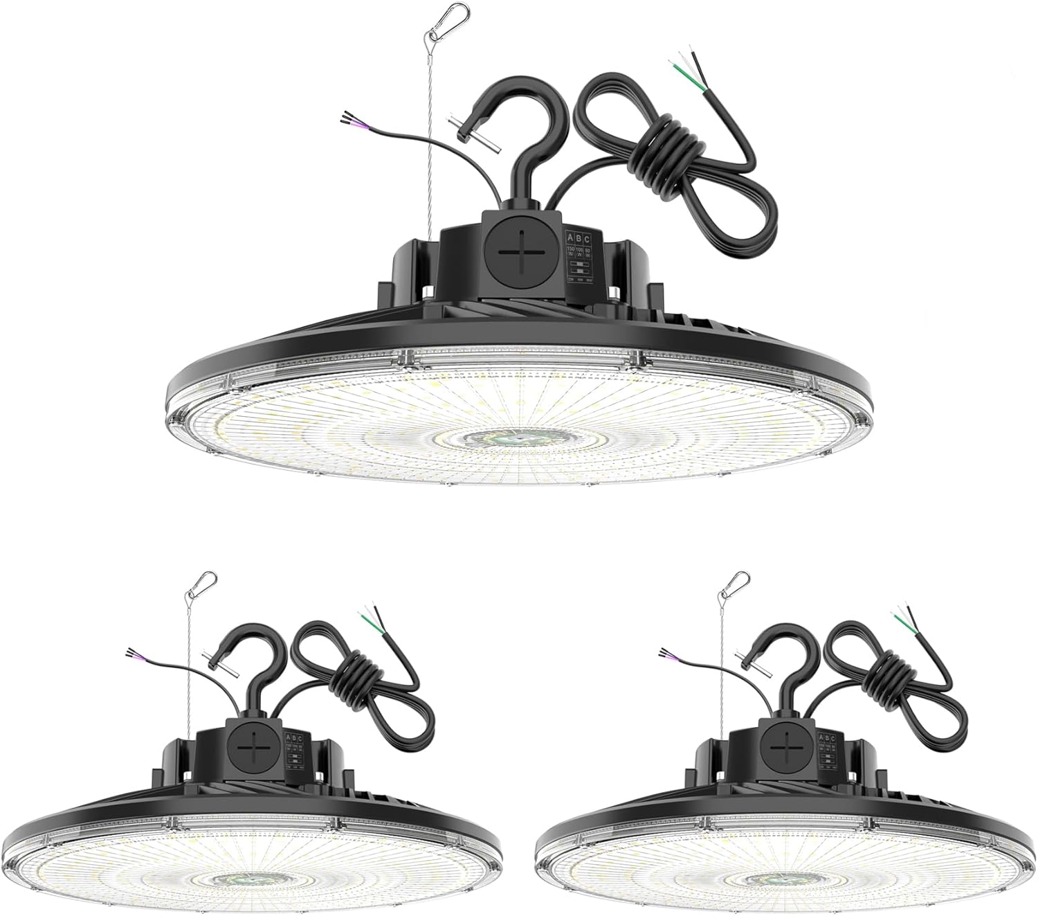 3 Pack 480V LED High Bay Light UL DLC Listed UFO Light 240W 200W 150W Adjustable, Dimmable High Bay LED Shop Lights 5000K Daylight, IP65 Commercial Bay Lighting for Warehouse Factory