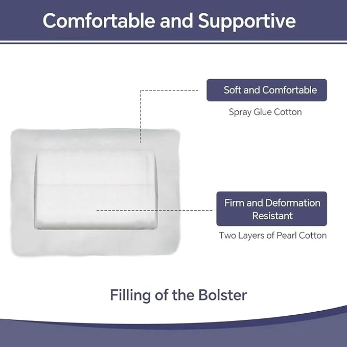 - ERGONOMIC DESIGN. FelizMax yoga bolster pillow provides optimal alignment of the spine and back support. Filled with the PE pearl cotton provides long lasting durability and structure. This large rectangular yoga pillow helps you to reduce pressure on joints, provide lumbar relief, deepen stretches, and grant total relaxation when exercising, meditating, stretching, sitting on the floor/chair or yoga.