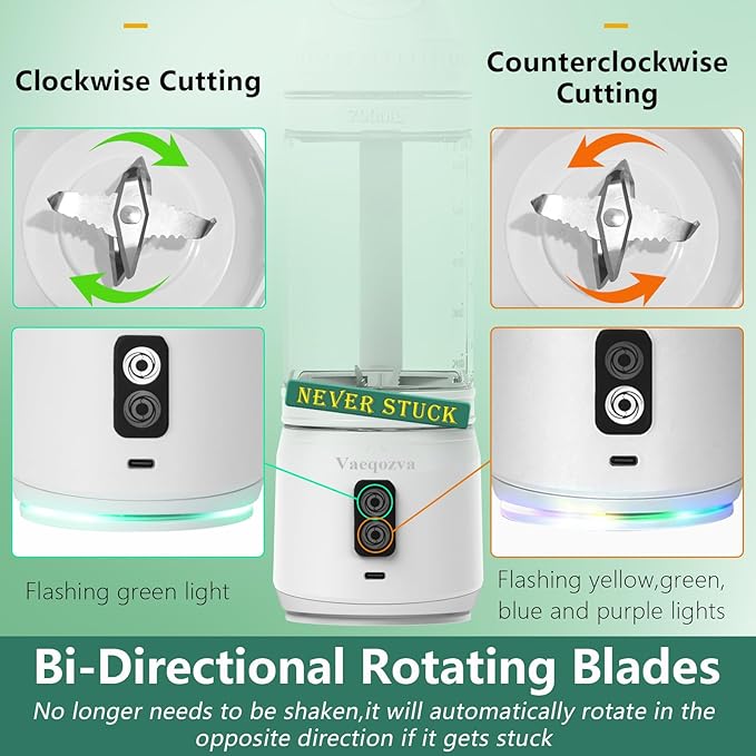 - SMART PREVENT JAMMING: The first portable smoothie blender with blades that rotate in both directions,the blending will be more powerful and effective,you will get more delicate smoothie shakes than ever before,don't worry about the blades getting jammed