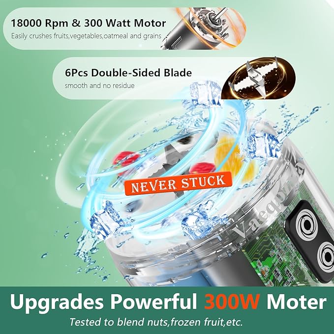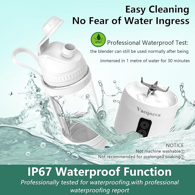 - WATERPROOF & EASY TO CLEAN: The Vaeqozva small smoothie blender is IP67 waterproof,double-click to turn on the self-cleaning mode,or just rinse mini blender with water,which makes it very easy to clean. Tips:Don't immerse the portable blender in water