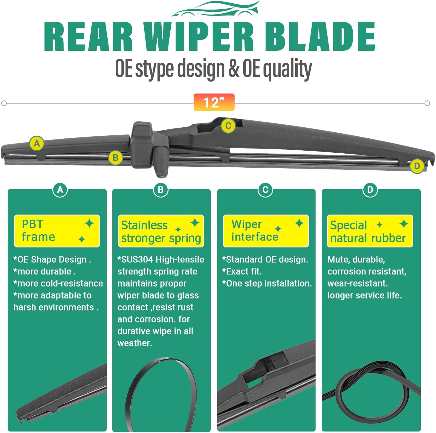 - [Super Clear Wipers]: High-quality rubber blade ensures efficient and streak-free wiping.