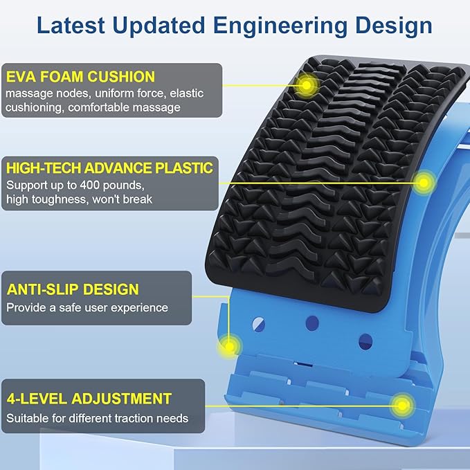 - Relieves Back Pain & Improves Posture - Our back stretcher provides physical stretching and back support for your back, effective for low back pain relief, spine decompression, back decompression, posture correction, back stretching, scoliosis and spinal realignment. ( ๐ง๐ถ๐ฝ: ๐๐ณ ๐๐ผ๐ ๐ต๐ฎ๐ฑ ๐๐๐ฟ๐ด๐ฒ๐ฟ๐ ๐ผ๐ฟ ๐ฎ ๐ฏ๐ฎ๐ฐ๐ธ ๐ถ๐ป๐ท๐๐ฟ๐, ๐ฐ๐ผ๐ป๐๐๐น๐ ๐๐ผ๐๐ฟ ๐ฑ๐ผ๐ฐ๐๐ผ๐ฟ ๐ฏ๐ฒ๐ณ๐ผ๐ฟ๐ฒ ๐๐๐ถ๐ป๐ด )