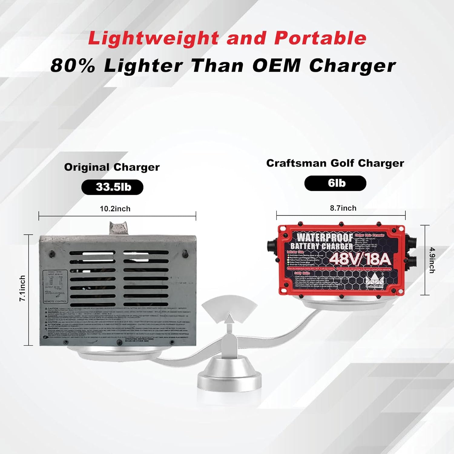 CRAFTSMAN GOLF 48 Volt 18 Amp Golf Cart Battery Charger for 48V EZGO Club Car Yamaha Onboard Golf Cart Charger with Crowfoot Plug