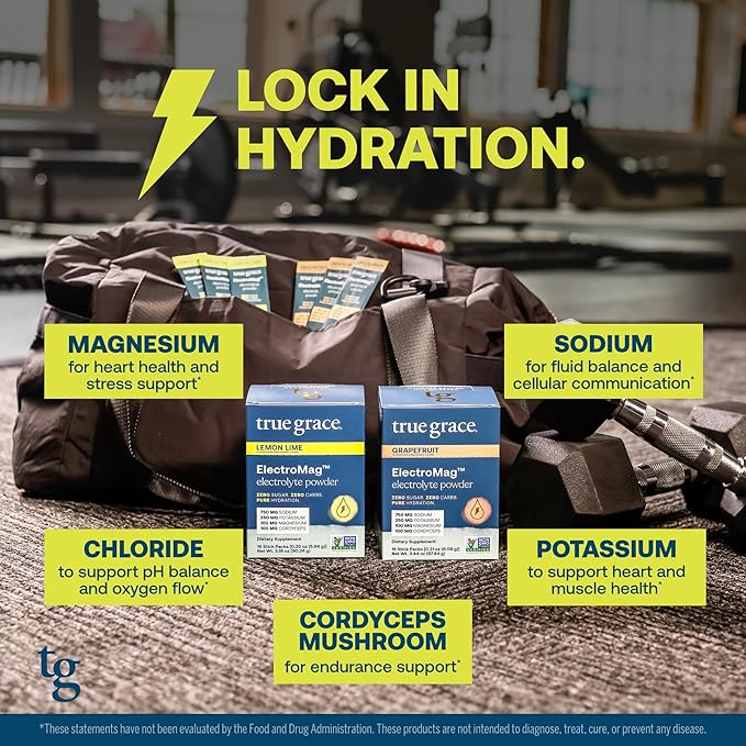True Grace ElectroMag - Grapefruit (16 Stick Packs) + Lemon Lime (16 Stick Packs) - Electrolyte Powder for Rapid Hydration - Zero Sugar & Carbs - Non-GMO - 32 Total Servings