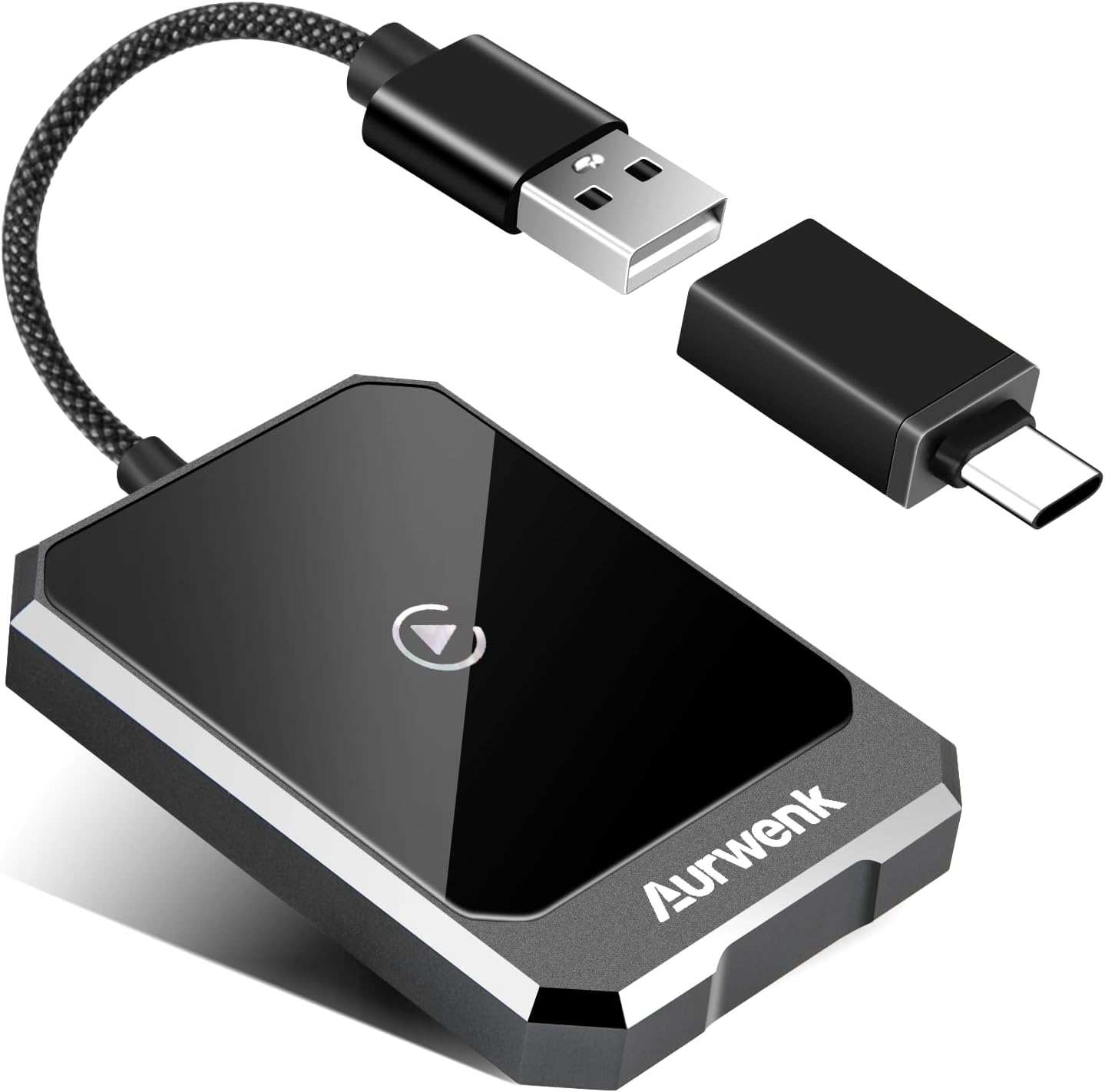 - Compact and Rugged Design: This sleek mini Bluetooth wireless CarPlay adapter, made of quality aluminum alloy, saves space and dissipates heat effectively. Paired with a nylon cable that passed over 50,000 bending tests, it ensures a stable, jitter-free connection CarPlay and long-lasting durability. A stylish and durable in-car companion