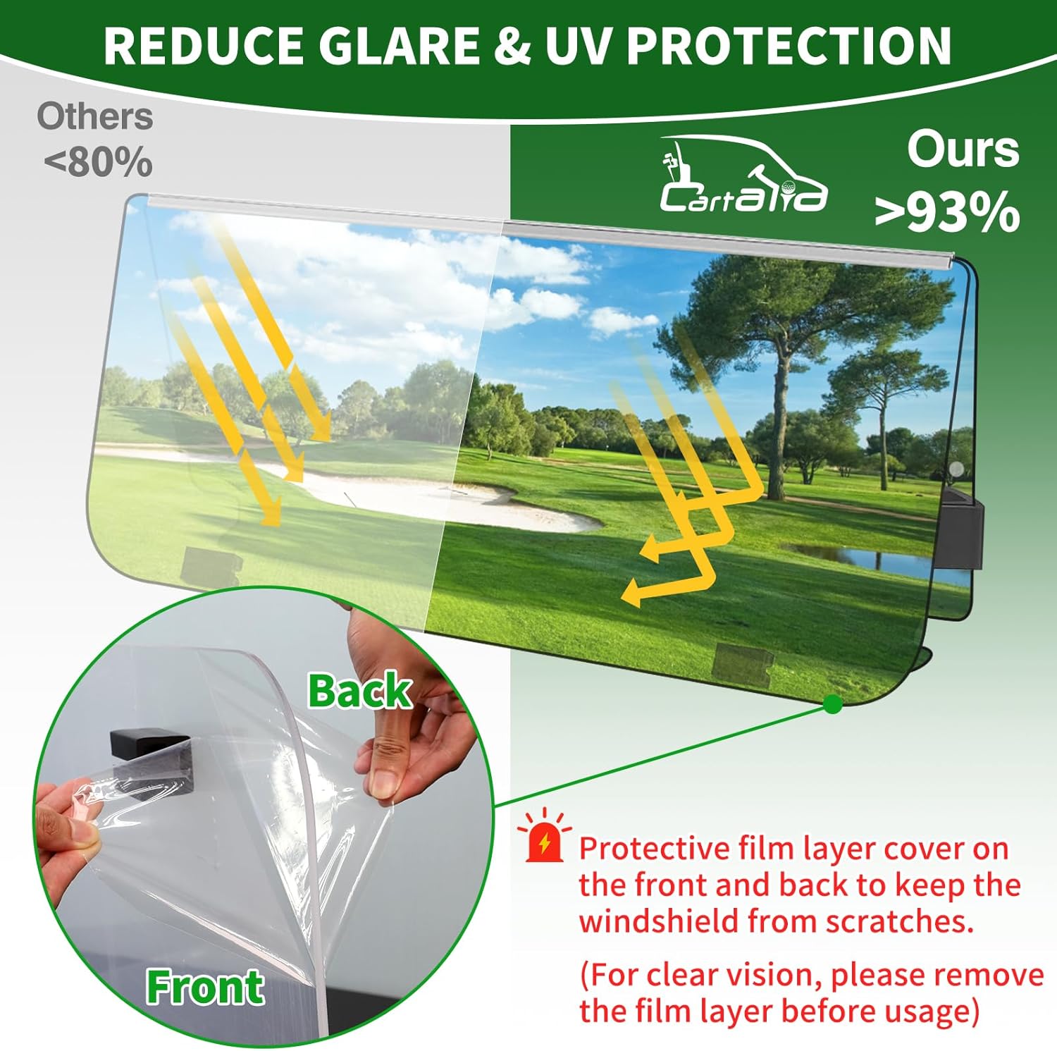 - Great Visibility In All Seasons: The yamaha golf cart windshield is sophisticated made, features reduced glare and UV protection. It's good for protecting passengers against windstorms, dust, twigs, ensuring more driving outdoors safety when under changing weather