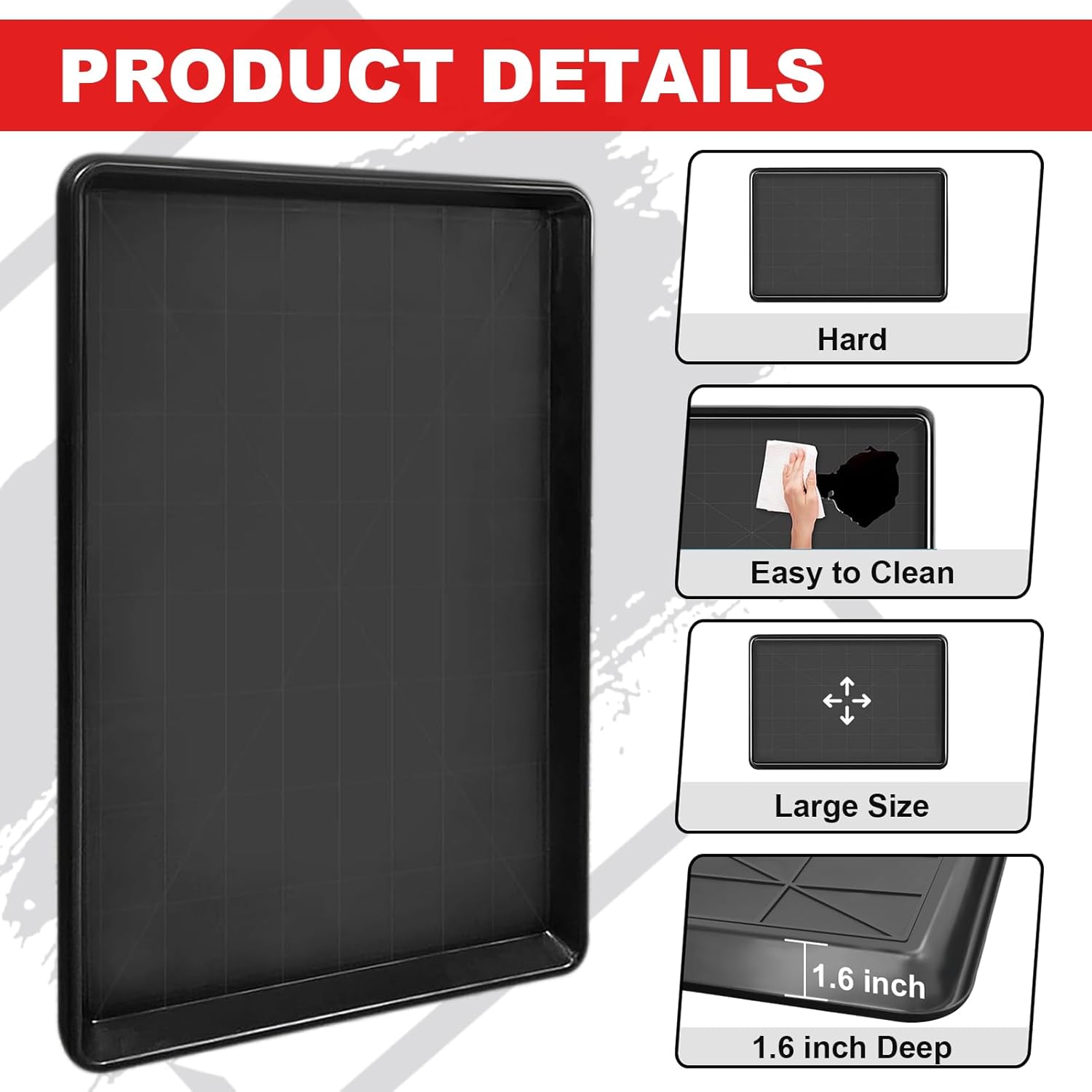 - 【Wide Application】 Our oil drip tray can be used as a car oil catch tray, an oil drip tray under the engine, a home refrigerator, a tool tray, a pet waste tray to replace the bottom of the cat litter box, etc. The stacking design allows it to be placed vertically when stored to prevent unused space from being occupied, providing you with a variety of practical uses, you can buy with confidence!