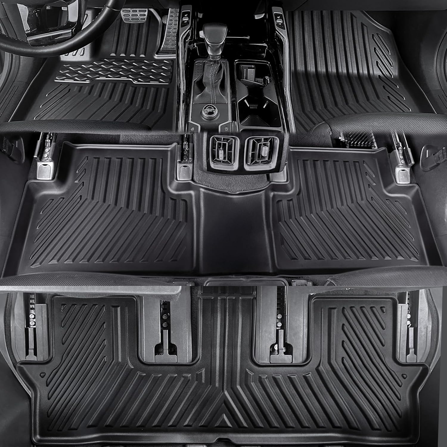 - Upgraded Design: Cargo mat with 2 and 1 design allows you to adjust the seat easily; extended floor mats covered the full isle way to the 3rd row