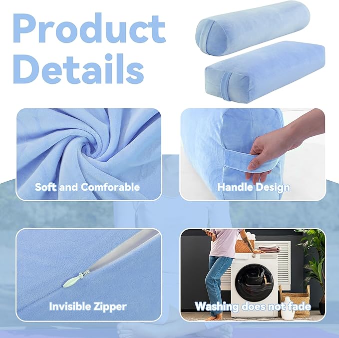 - Velvet cover: Our yoga bolster covers are made of velvet that is skin-friendly, soft and stretchy, and will help you relax quickly, whether you're doing yoga or using it for daily breaks. There is an invisible zipper that can be cleaned by hand or machine after removing the cover, and the handle on one side helps you carry it better.