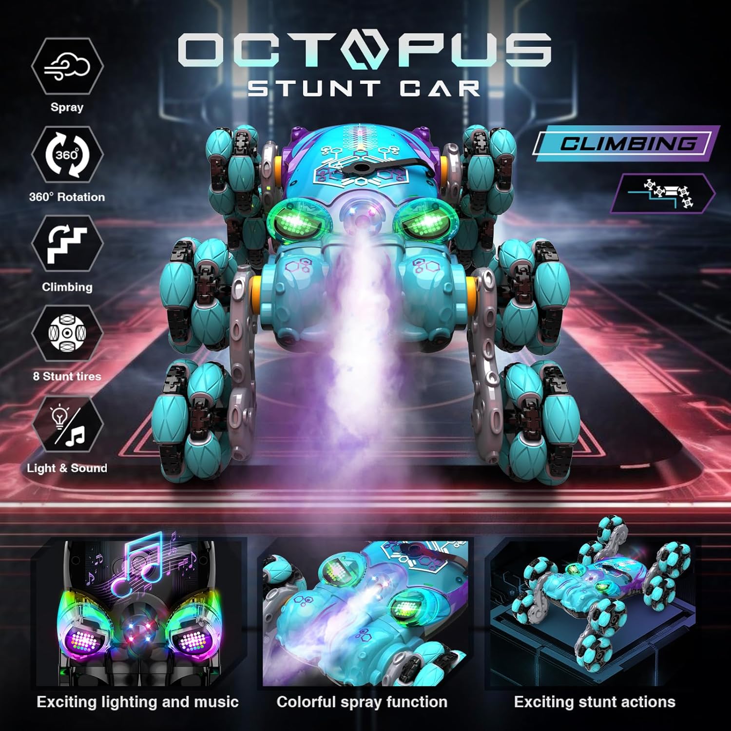 8WD Gesture Sensing RC Stunt Car, Boys Toys with Spray & Light, Hand Controlled RC Car Toys Gift for Kids Boys Age 8-12