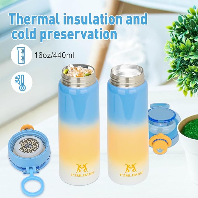 Kids Water Bottle, Mini Water Bottle, Children's Insulated Water Bottle 16 oz, Insulated Cooling Stainless Steel Bottle for Sports and Travel (Blue)