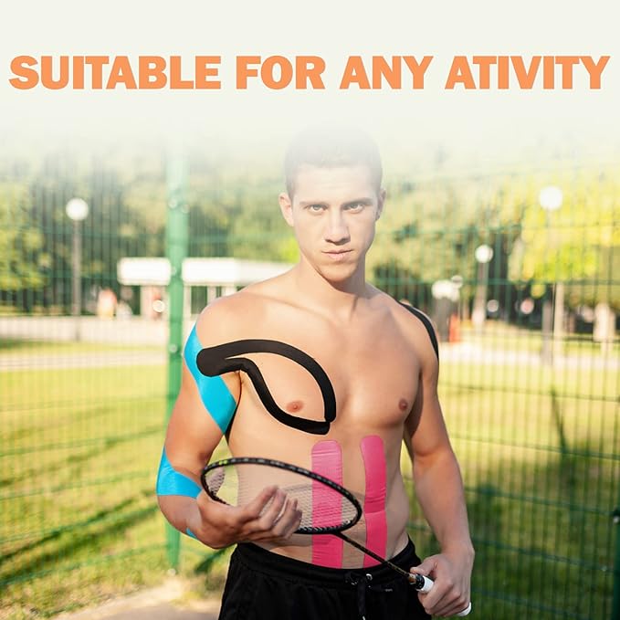 - SKIN FRIENDLY AND LATEX FREE - OK TAPERegular Kinesiology Tape is made of high quality hypoallergenic material and is skin friendly. The professional acrylic glue sticks well and is latex-free to minimize the possibility of skin irritation, itching and blisters.