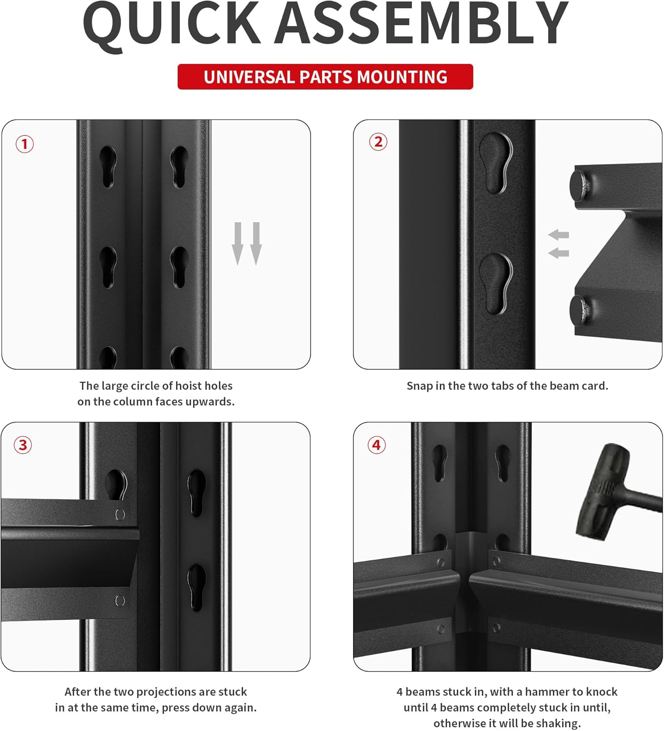 - 🍖【Quick and Easy Assembly】Our metal shelf is designed for quick and straightforward assembly. With clear instructions and all necessary hardware included, you can have your shelving unit set up in no time, without any hassle.