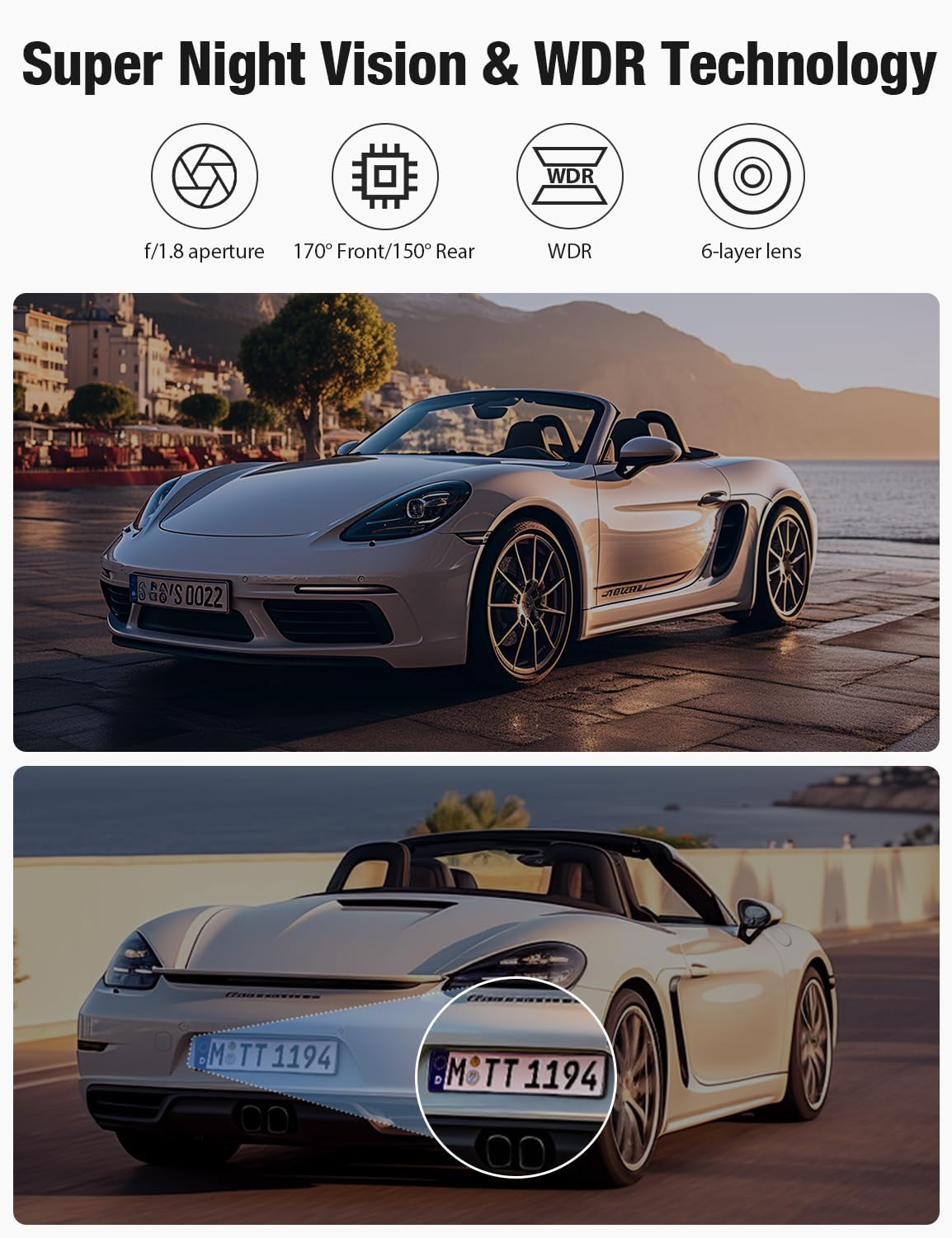 OMBAR Dash Cam Front and Rear 5G WiFi, Dash Cam 4K/2K/1080P+1080P, Dash Camera for Cars with 3.18" LCD Screen, Dashcam Car Camera with WDR Night Vision, G-Sensor, Loop Recording, SD Card Not Included