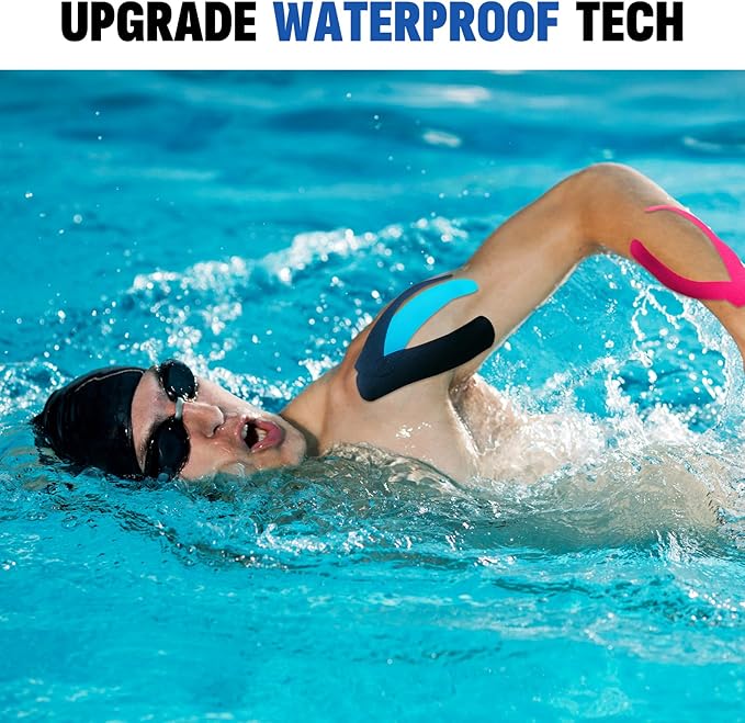 - 【Waterproof Kinetic Tape】We have upgraded the cotton material and adhesive of the kinetic tape, and adopted a unique water ripple design to make our muscle tape water resistant and sweat resistant. They can stick tightly to the skin all the time, even after multiple sweating and showering, the tape remains securely in place