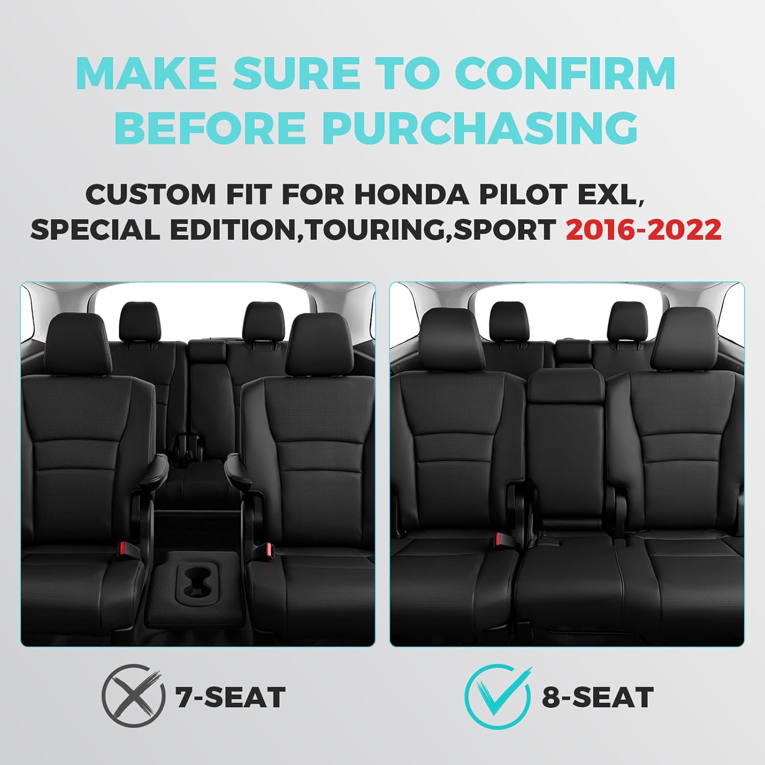 - ăCustom Fit Car Seat Coversă: Specifically designed for Honda Pilot seat covers 3 Rows, these fit the 2016 2017 2018 2019 2020 2021 2022 Pilot EX-L,SPECIAL EDITION,TOURING,SPORT models.