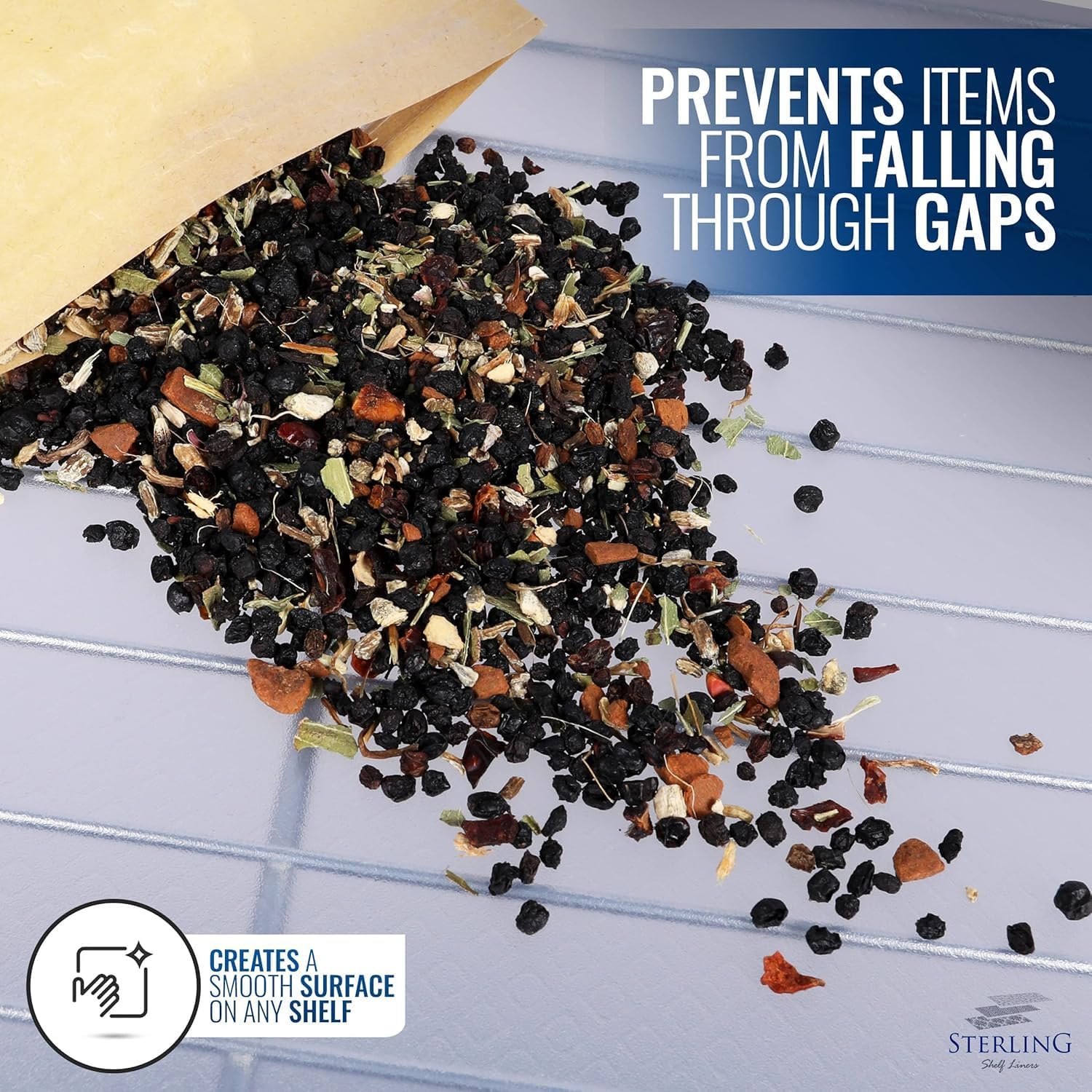 - Elegant Design: Our shelf liner for wire shelving system is offered in a variety of semi-translucent, frosted colors to match your interior decor. Match the color to your pantry, garage or utility cupboard.