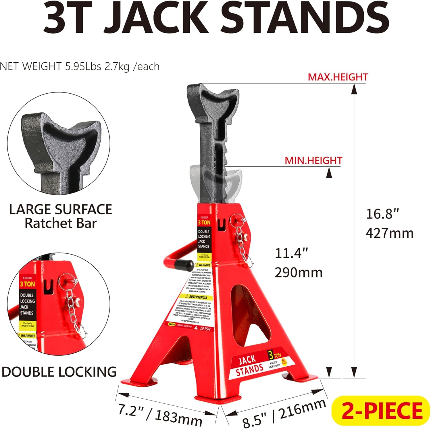 - Color : Red Floor Jack+2 Jack Stands+Tire Repair Kit