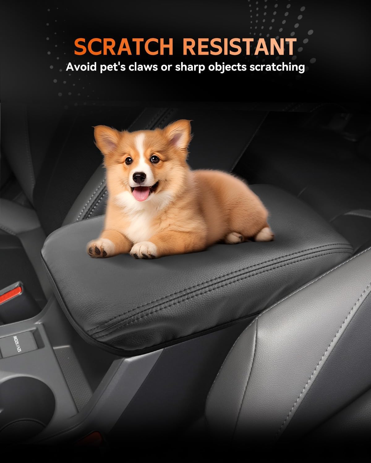 - [Excellent Scratch Resistance] The car Armrest Cover is made of high quality PU microfiber leather, thick enough to keep out pet paws, dust and sticky fingers. The surface is waterproof, wear-resistant and durable, breathable, light weight and easy to wipe clean of dirt.