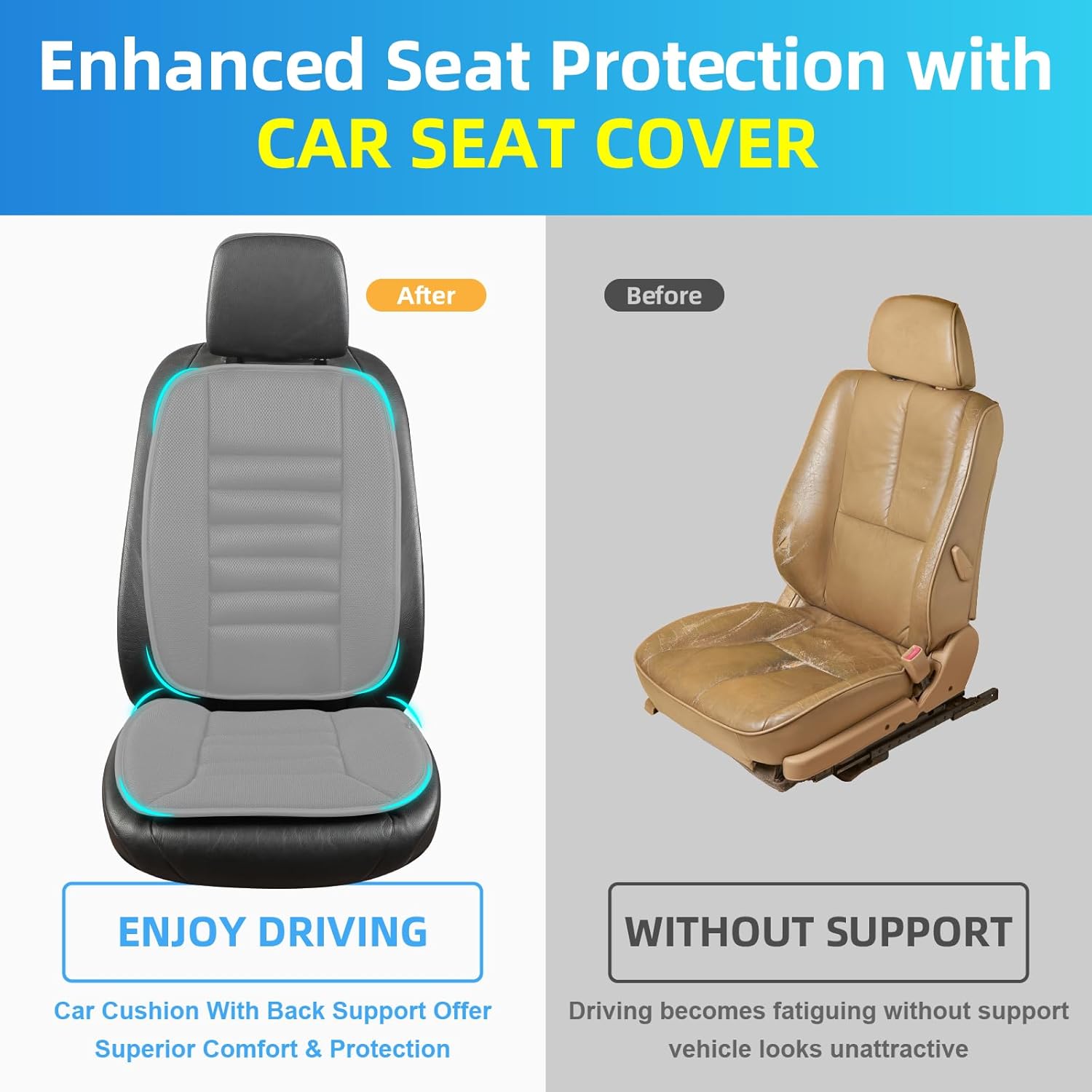 - Front Back & Butt Cushion Protect the Seat - The driver seat cushion & lumbar pillow enhance ultimate comfort, provides superior protection for your seat against stains & everyday wear, ensuring the good driving experience. Compared to ordinary full car seat cover, this car lumbar support and car cushion is easier to install