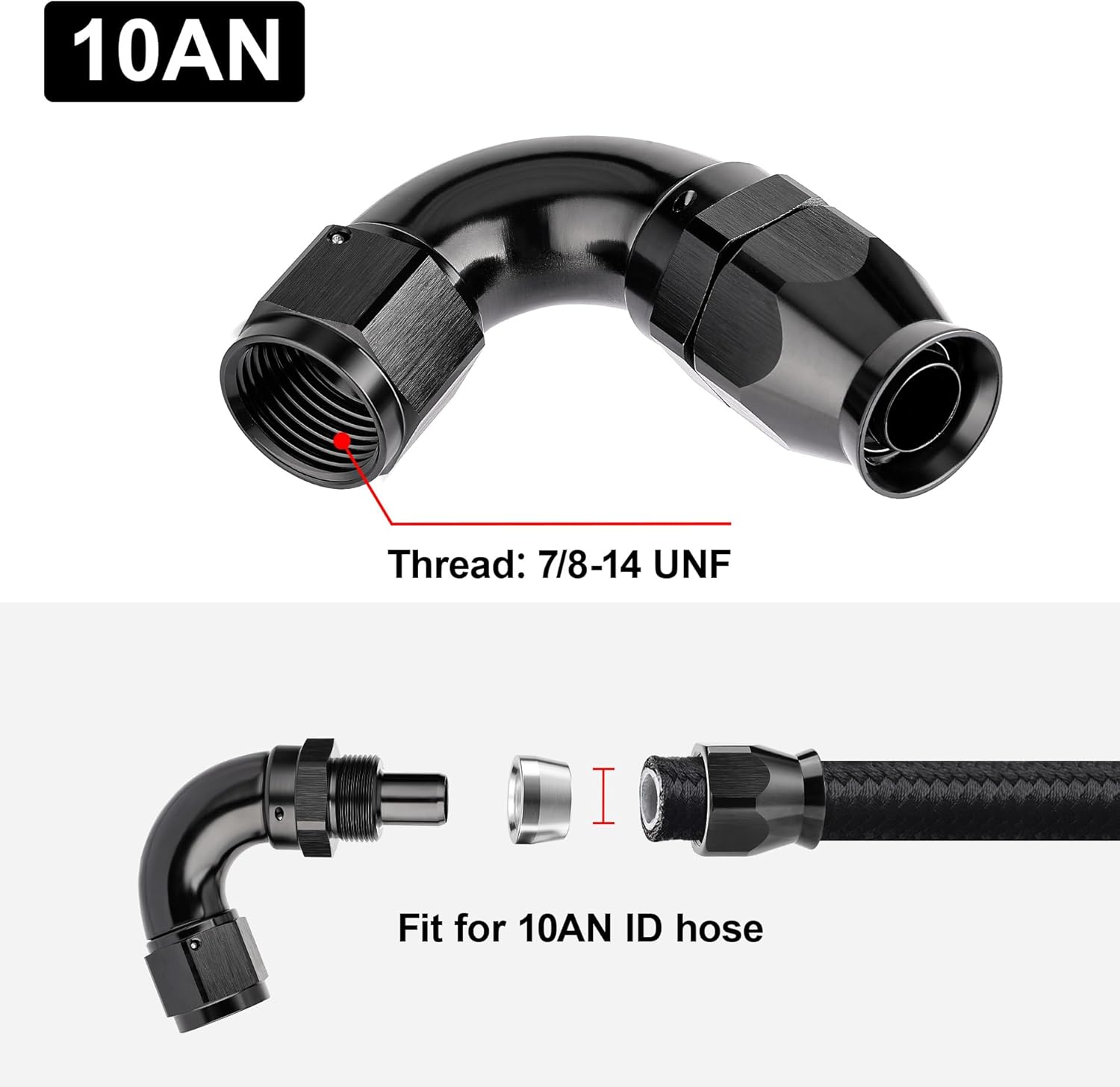 - [Product Size & Parameter] Size: 10AN. Thread Size: 7/8-14 UNF. Working Pressure: 1500PSI. Working Temperature Range: -40°F-250°F. Angle: 120 Degrees. Note: Please verify the hose size before purchase.