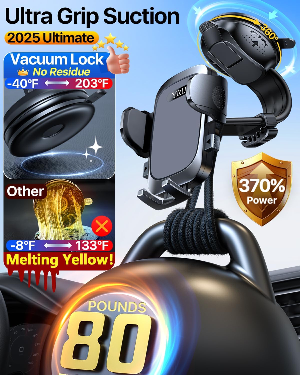 - 2025 Ultimate & High-End Car Holder, Trusted by 30,000+ Users: YRU 2025 upgraded car phone holder with 4 years of R&D passed 30,000+ users driving 900,000+ miles test, is a 3A-Grade reliable car mount, stable & durable. Got safely certified