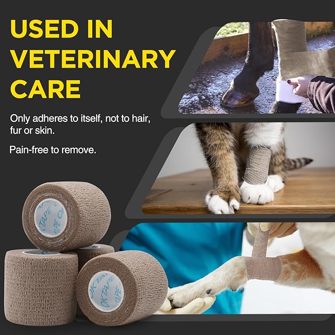 - SELF STICK: Self adhesive bandage wrap sticks only to itself, not skin, fur or wound; There is no need for safety pins or tape to hold in place; Also very easy to remove without sticky residue
