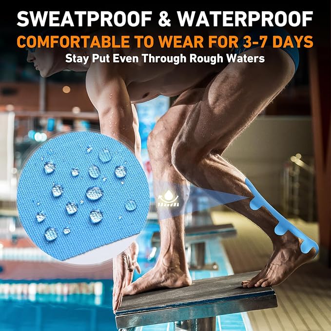 - UPGRADED WATERPROOF AND BREATHABLE MATERIAL - Advanced material is designed to withstand exposure to water, sweat, and moisture, making it ideal for intense physical activities and even aquatic sports. At the same time, its breathable properties allow air to circulate, reducing the risk of skin irritation and ensuring that the tape remains comfortable during prolonged wear.