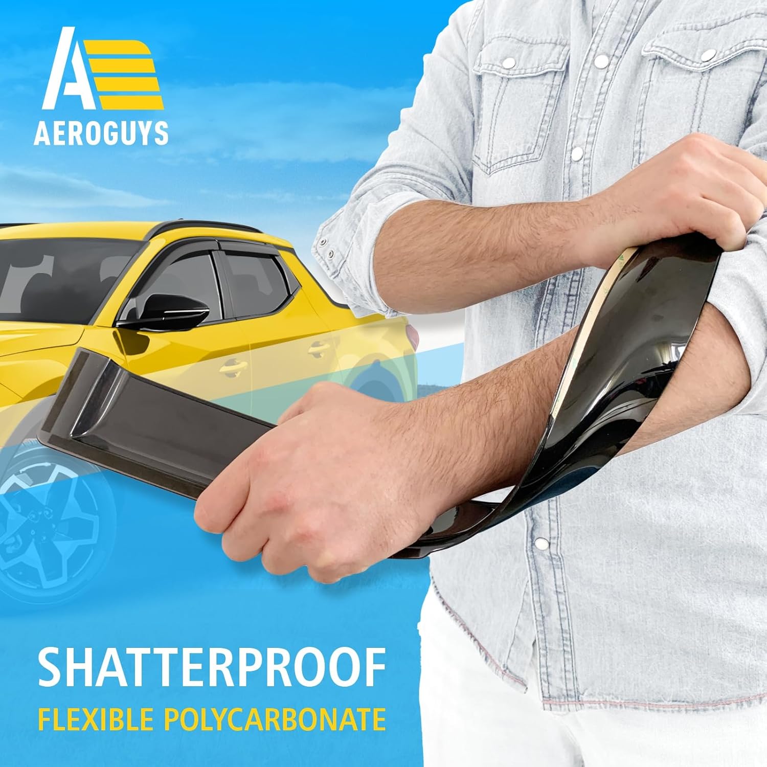 - Incredibly Durable AEROGUYS Auto Window Deflectors β They are made with strong and tough polycarbonate which is clear and scratch-resistant. They also provide UV protection making your ride more comfortable under all weather conditions.