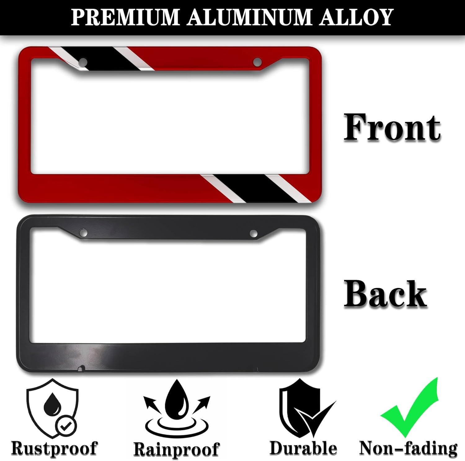 Car Plate Frame Red, Black, White License Plate Frames Trinidad and Tobago Flag Aluminum Metal Car Accessory 2 Pack with Screw Covers Set