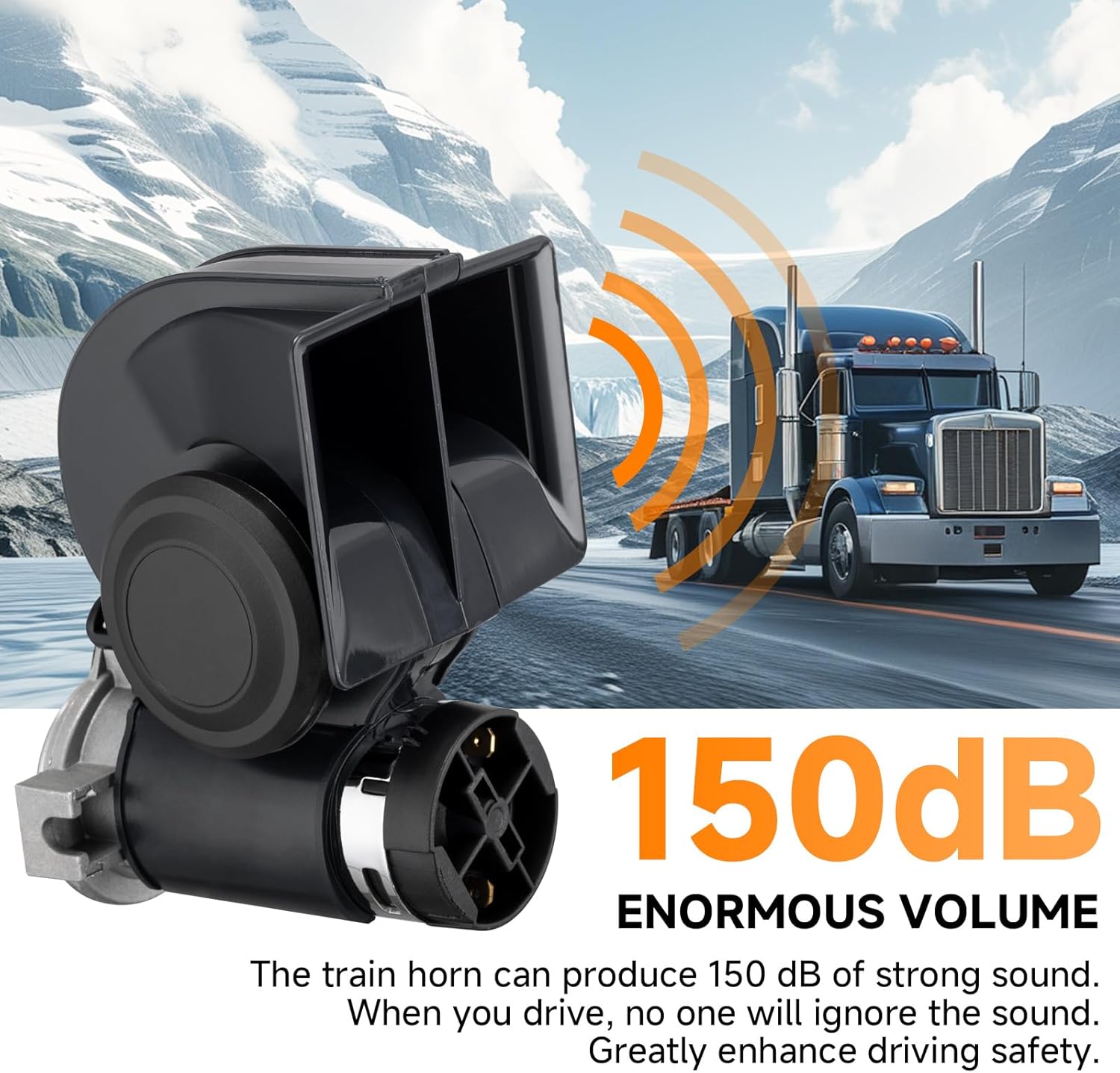- LOUD AND POWERFUL - The car horn blares out a loud and powerful warning. The great bellowing sound catches everyone's attention and is heard all over. The trumpet can produce sound as loud as 150 DB