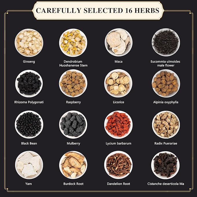- 【Rich Ingredients】Our men's herbal tea is crafted with 16 carefully selected natural herbs, ensuring the use of whole material slices while avoiding any fragments. Ingredients include Ginseng, Mulberry, Maca, Yam, Goji Berry, Polygonatum Sibiricum, Eucommia, Raspberry, Licorice, and more, aimed at providing comprehensive health support.