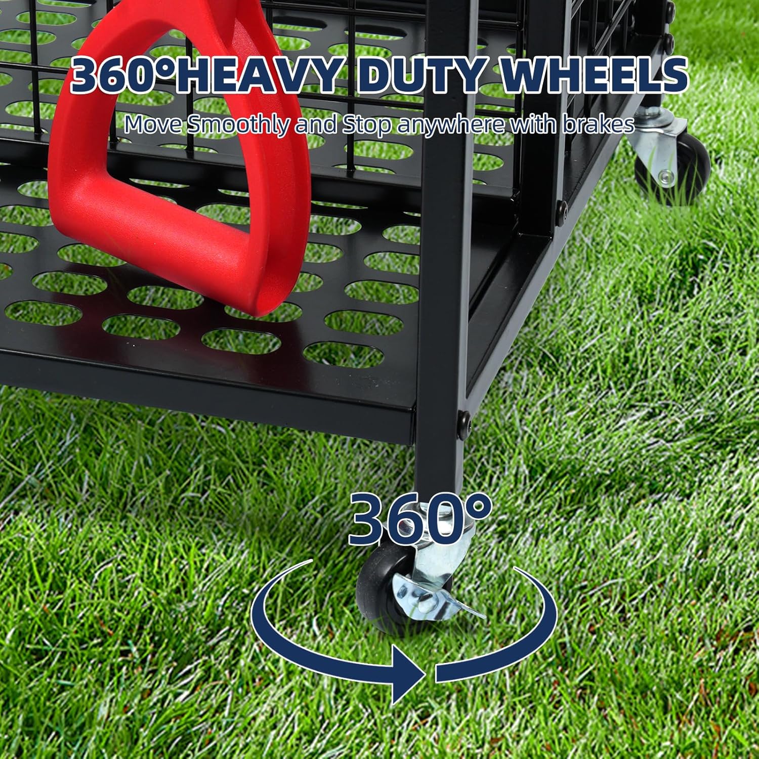 • WIDELY USED - Thanks to its functional design and sturdy structure, the garden tool storage is equipped with four sturdy metal wheels, you can easily move the yard tool organizer anywhere without using much power. And two of the wheels have brakes, you can stop it anywhere, perfectly used in garages, gardens, sheds, and backyards.