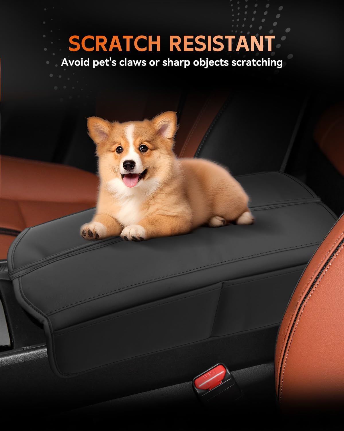 - [Excellent Scratch Resistance] The car Armrest Cover is made of high quality PU microfiber leather, thick enough to keep out pet paws, dust and sticky fingers. The surface is waterproof, wear-resistant and durable, breathable, light weight and easy to wipe clean of dirt.