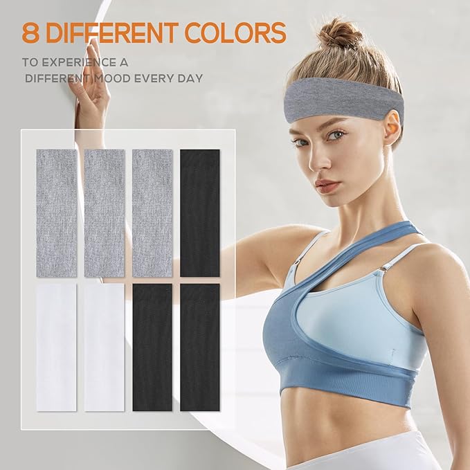 Workout Headbands for Women Non Slip - 8PCS Elastic Sport Head Bands for Women's Hair, Sweat Headband for Athletic Yoga Running Gym