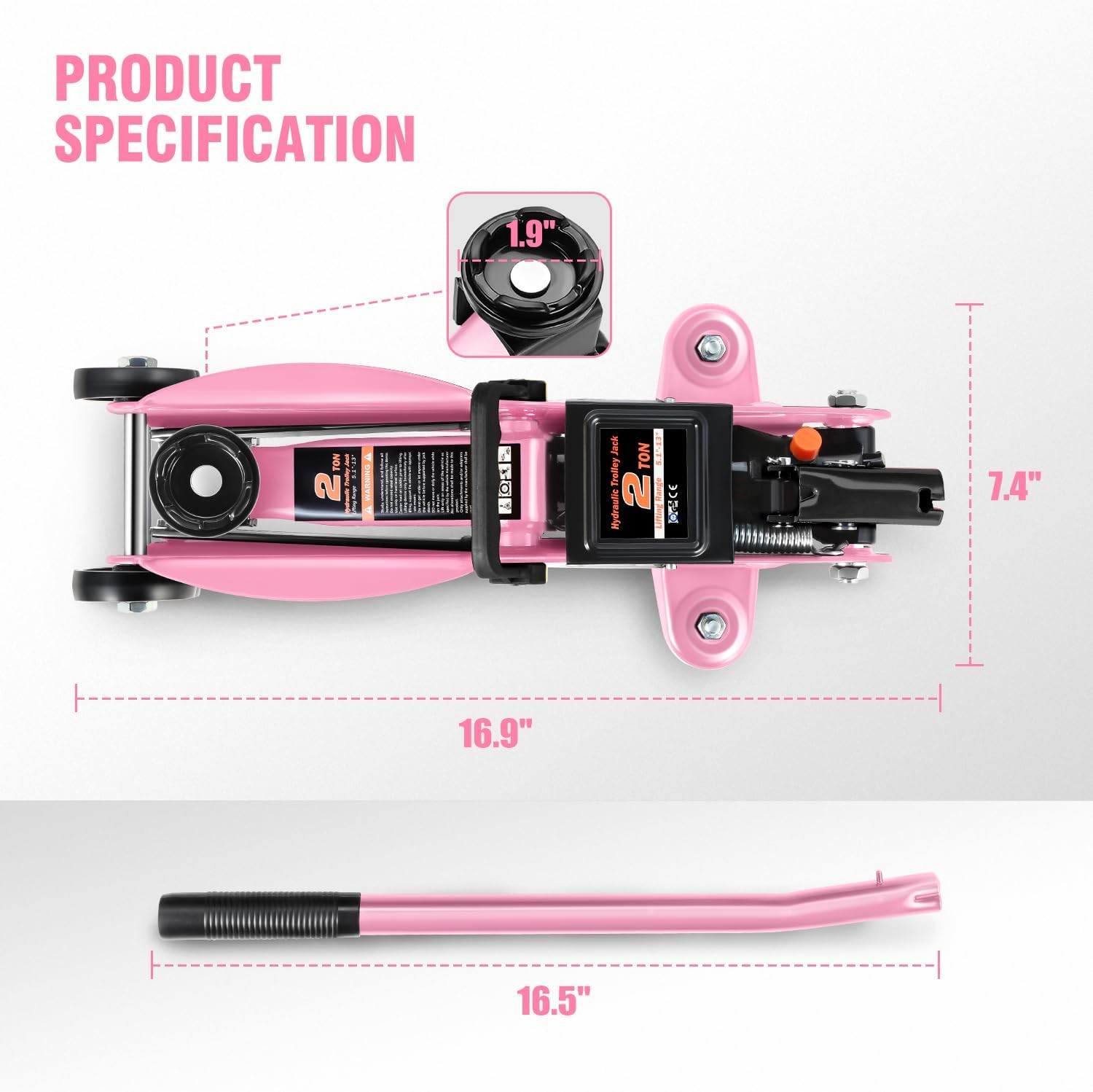 DNA MOTORING Low Profile Hydraulic Trolley Service/Floor Jack, 2 Ton (4000 lbs) Capacity, Lifting Range 5.1"-13", Pink, TOOLS-00474-PK