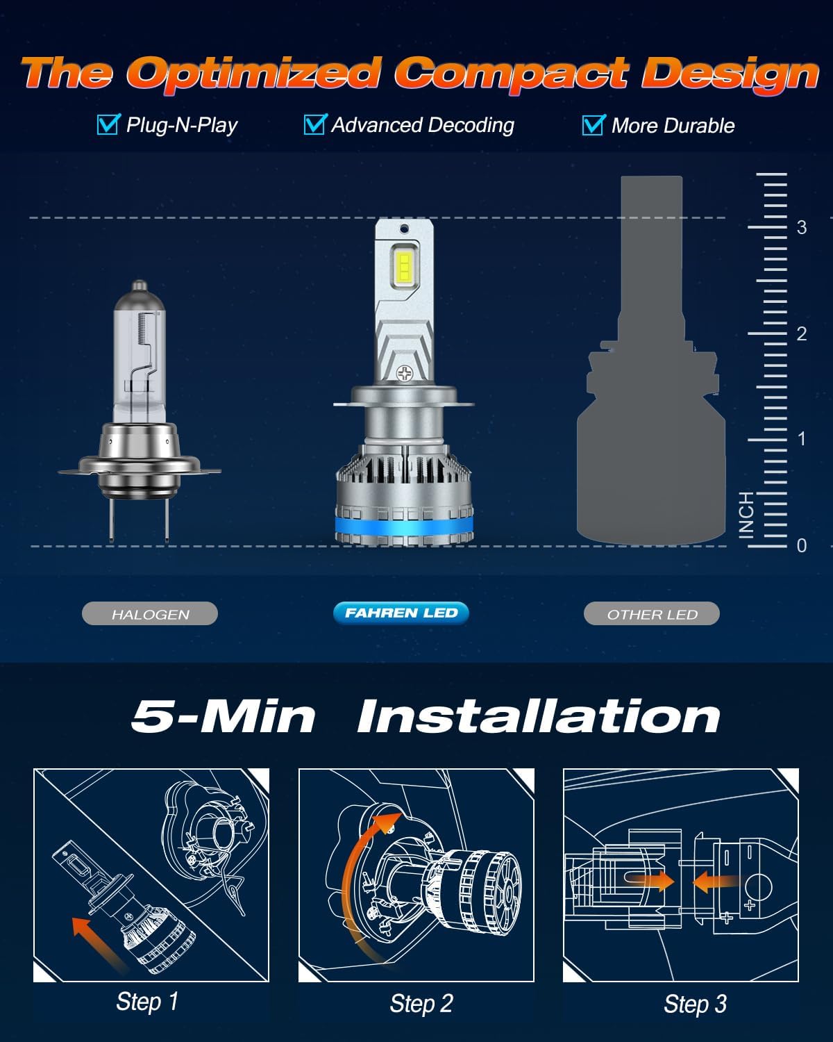 - Quick and Easy 10-Minute Installation: Designed for a seamless plug-and-play setup, these H7 fog bulbs are engineered for a quick, hassle-free installation in just 10 minutes. An included additional decoder ensures enhanced performance and compatibility.