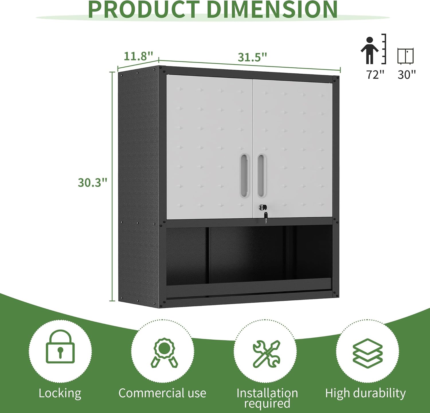 Garage Wall Cabinet,Metal Wall Cabinet with Doors and Adjustable Shelves,Steel Utility Wall Mounted Tool Cabinets for Home,Office,Kitchen,Warehouse