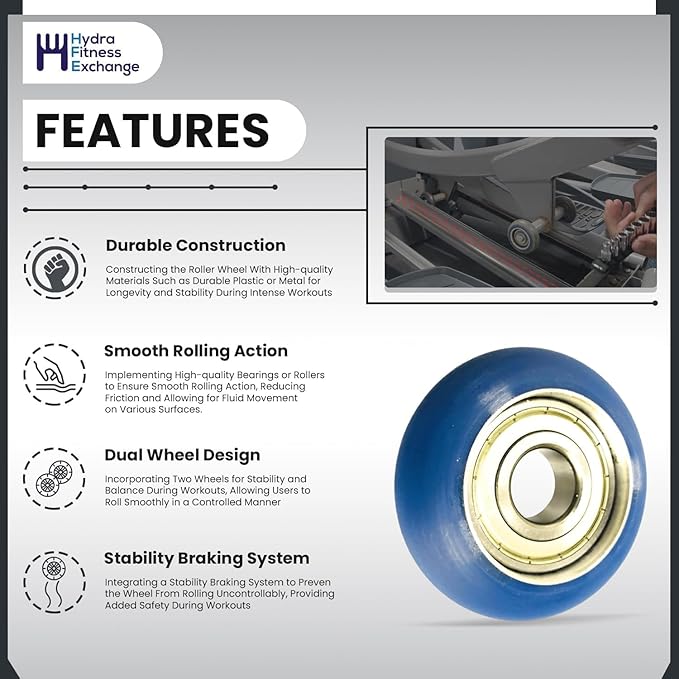- Compact Design: The advanced gym replacement wheel features a newly upgraded circular wheel structure, offering superior durability and enhanced resistance to pressure, making it less prone to damage. This upgraded design with rounded wheels ensures better performance and longevity.
