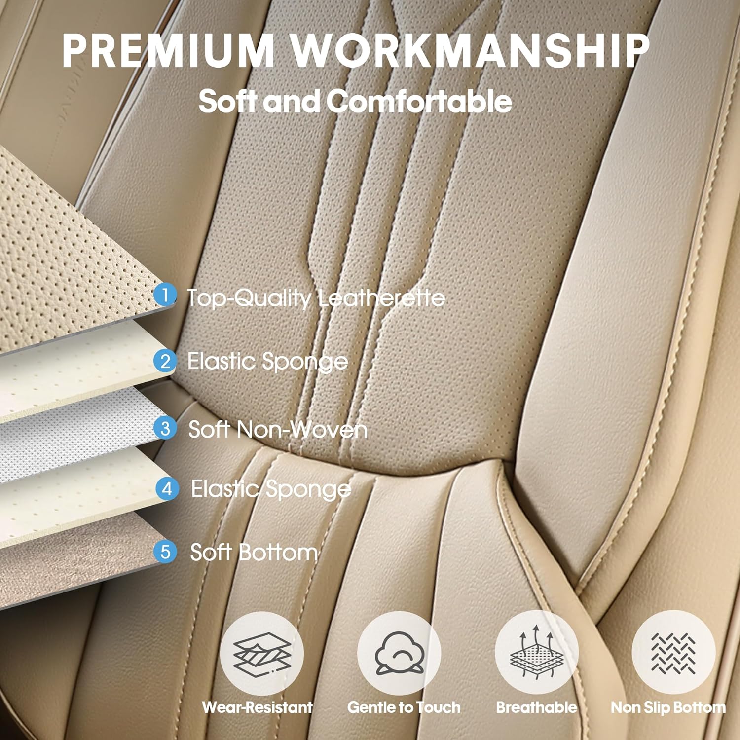 AOOG Front Seat Covers, Car Seat Covers Front Seats, Leather Seat Covers for Cars, Waterproof Seat Covers with Lumbar Support Universal Fit for Most Cars SUV Trucks(Front Pair, Beige)