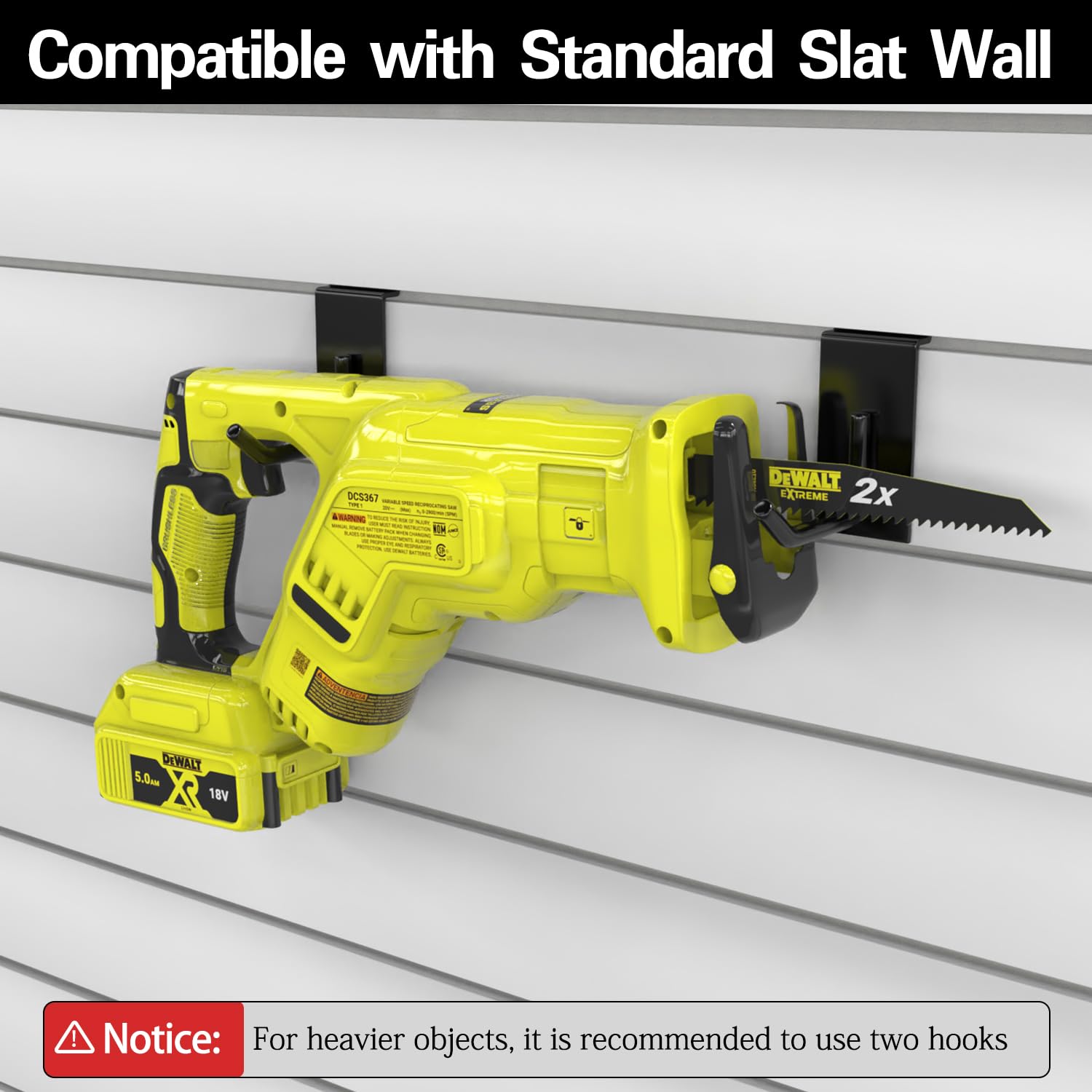 - Upturned tail design: The board wall hook is designed with a tail that curves upwards, make them hang more firmly and prevent items hung on them from falling off. Our slatwall tool holder can more easily hang items such as household cleaning supplies, painting supplies, extension cords, and more, providing years of reliable service for keeping garage slat wall storage systems organized and tidy