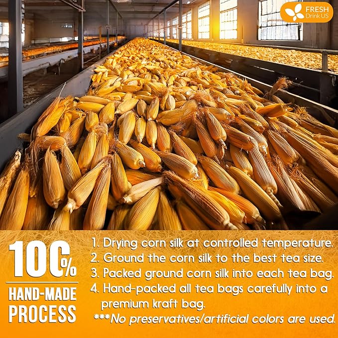 - ☘️ CONVENIENCE & ENJOYMENT: Corn Silk tea bags are perfect for busy lifestyles. Whether you're at home, at work, or traveling, you can easily enjoy the benefits and flavors of Corn Silk tea without the need for loose herbs or complicated brewing methods. It can be enjoyed hot or cold, and it is often sweetened with honey, sugar, or other sweeteners like Stevia leaves.