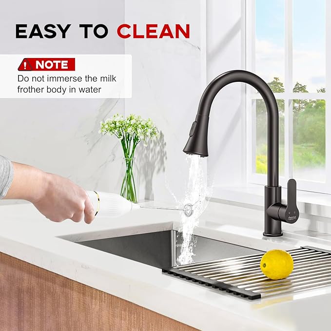 - Complete Set with Stand & Stirring Spoon: In addition to the frother, this set includes a convenient stand to keep your frother neatly stored on your countertop, and a stirring spoon for mixing milk, cocoa, or other ingredients with ease. Batteries not included.