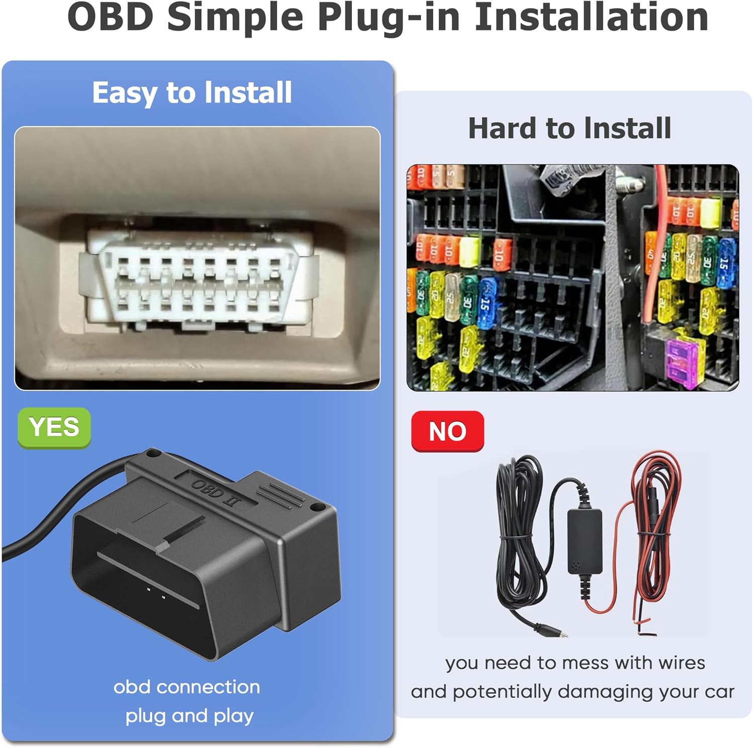 - 【Simple Plug-in Installation】: The 9.84ft OBD power cord comes with a standard OBD interface,suitable for most cars.Not only the installation is more convenient and simpler,plug and play also without damaging the car circuit.Most important there is no need to pay for installation! Comes with pry bar installation tools and instructions, worry free installation.
