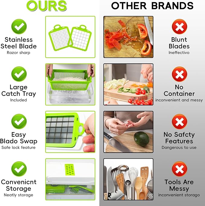 - Safety design: Built-in cutting cover and non-slip pad ensure that the ingredients are stable during the cutting process and prevent slipping or staining the table top. In addition, hand guards provide comprehensive protection for your hands, ensuring that you are safe when cutting.