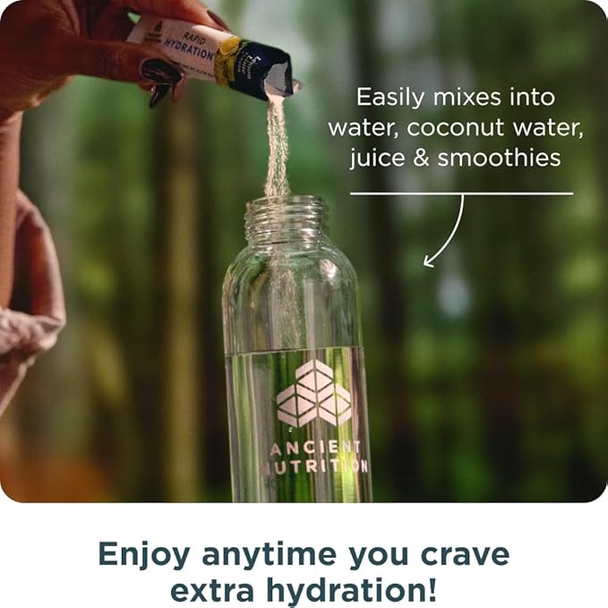 Ancient Nutrition Rapid Hydration Powder, Lemon Lime, Electrolytes from Natural Sea Salts and Red Marine Algae, Supports Rapid Body Hydration and Cellular Health, 15 Servings