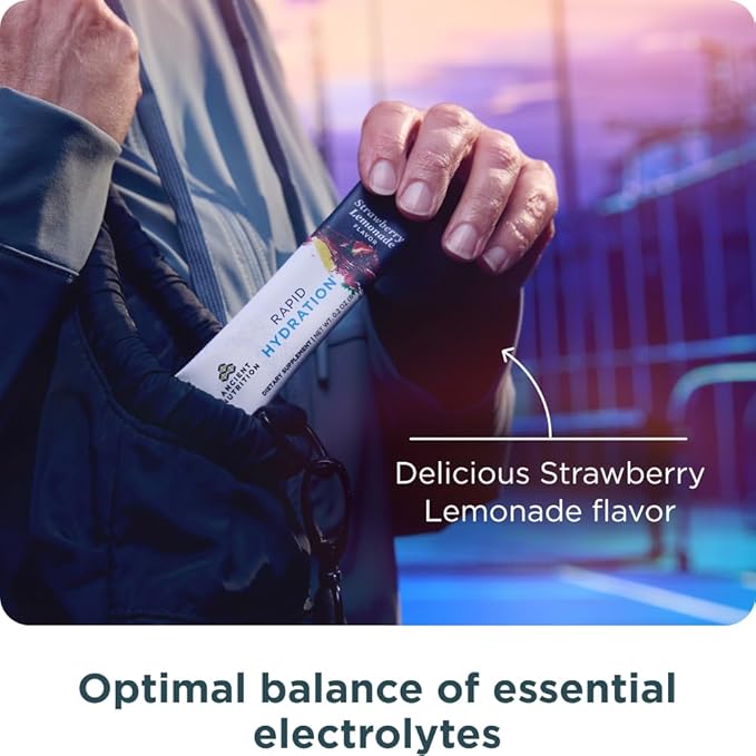 Ancient Nutrition Rapid Hydration Powder, Strawberry Lemonade, Electrolytes from Natural Sea Salts and Red Marine Algae, Supports Rapid Body Hydration and Cellular Health, 15 Servings