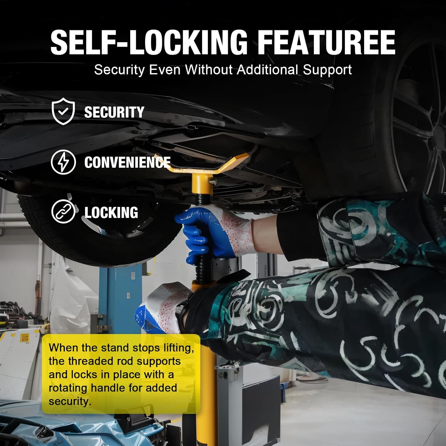 - Easy To Use, Sturdy - The under hoist stand has a 12-inch base at the bottom, which prevents slippage for all purposes, and the U-shaped tray has rubber pads to provide firm support for your car.
